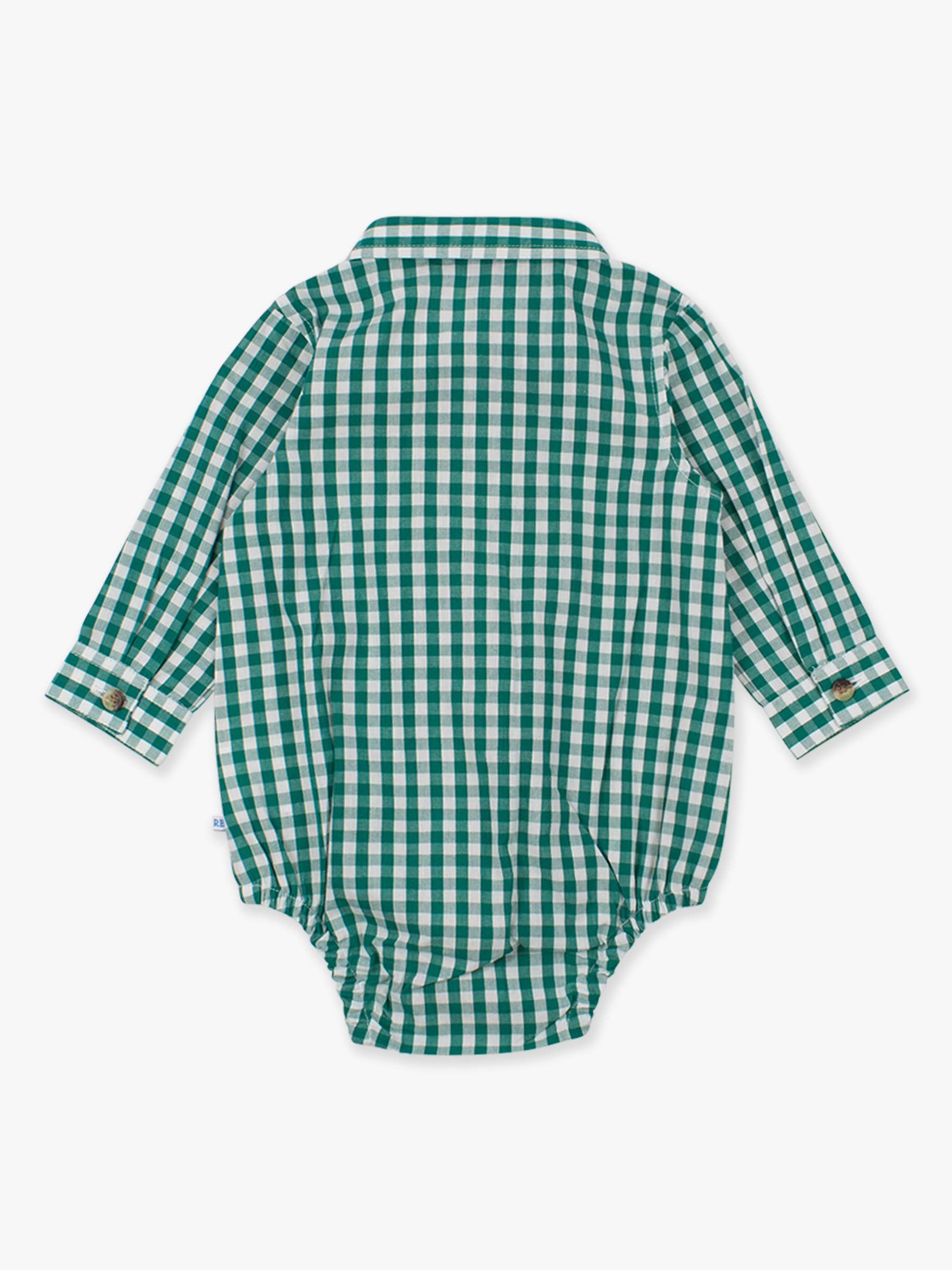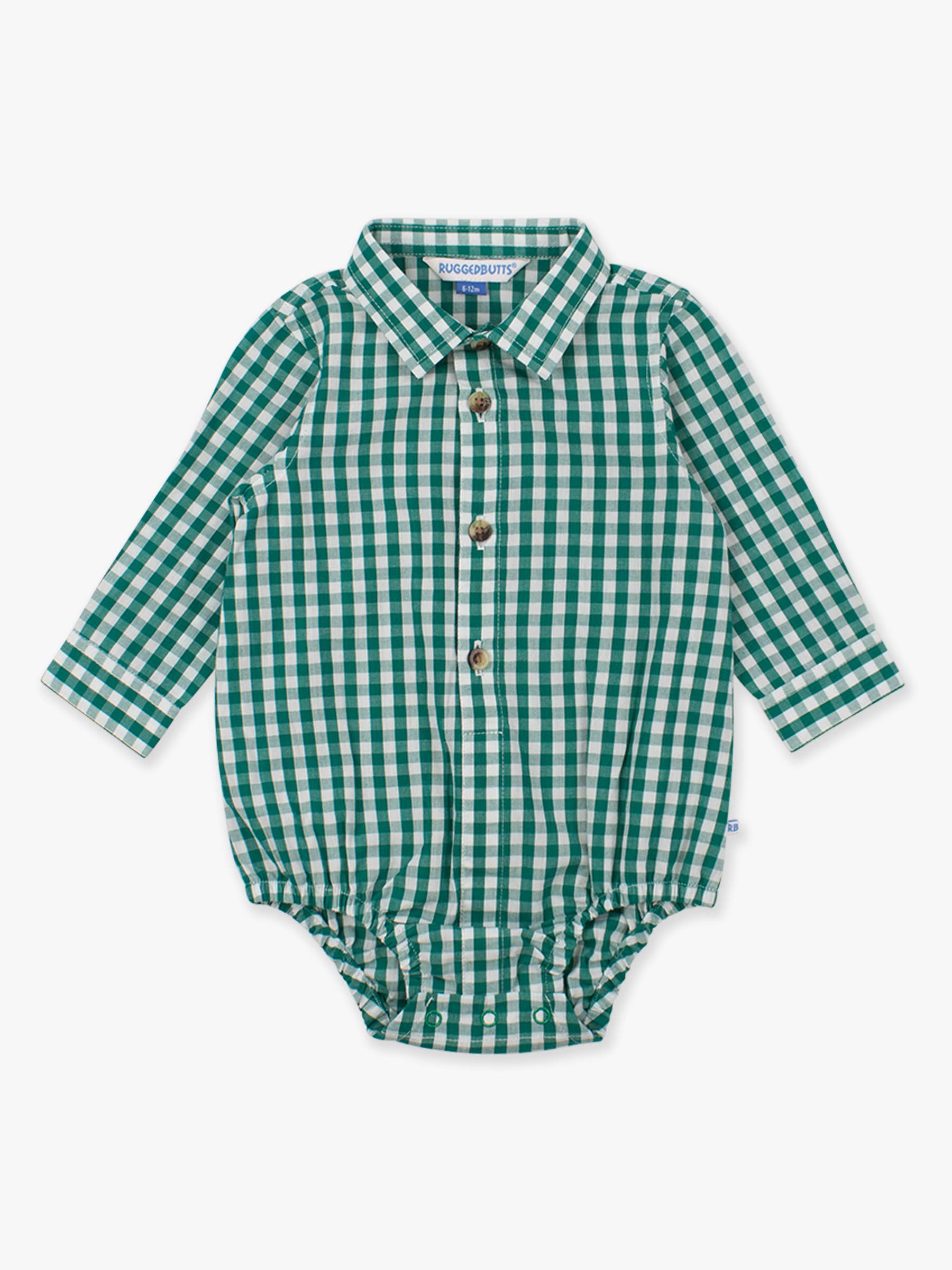 Baby Boys Classic Gingham Long Sleeve Button Down Bodysuit: Emerald Green