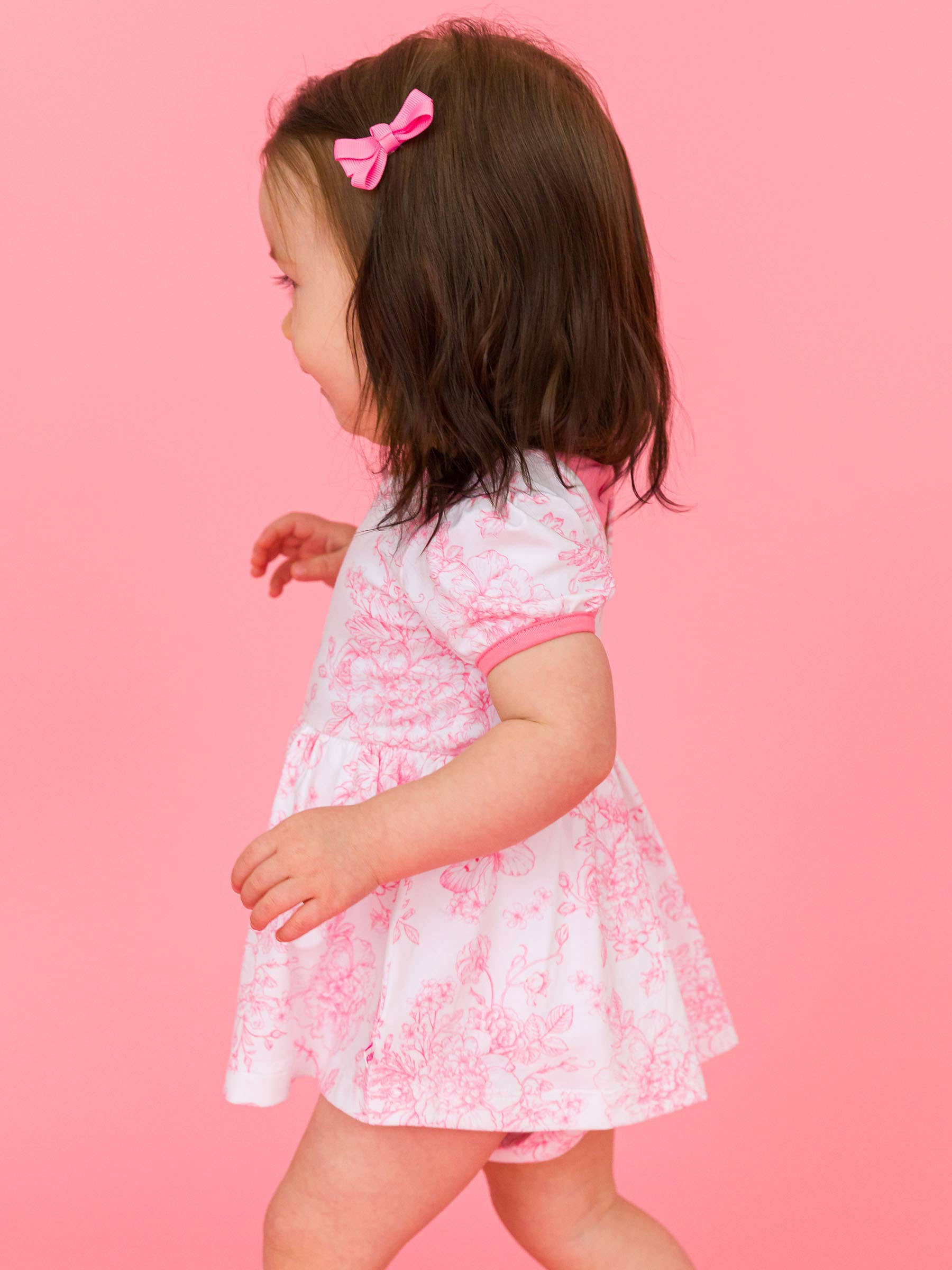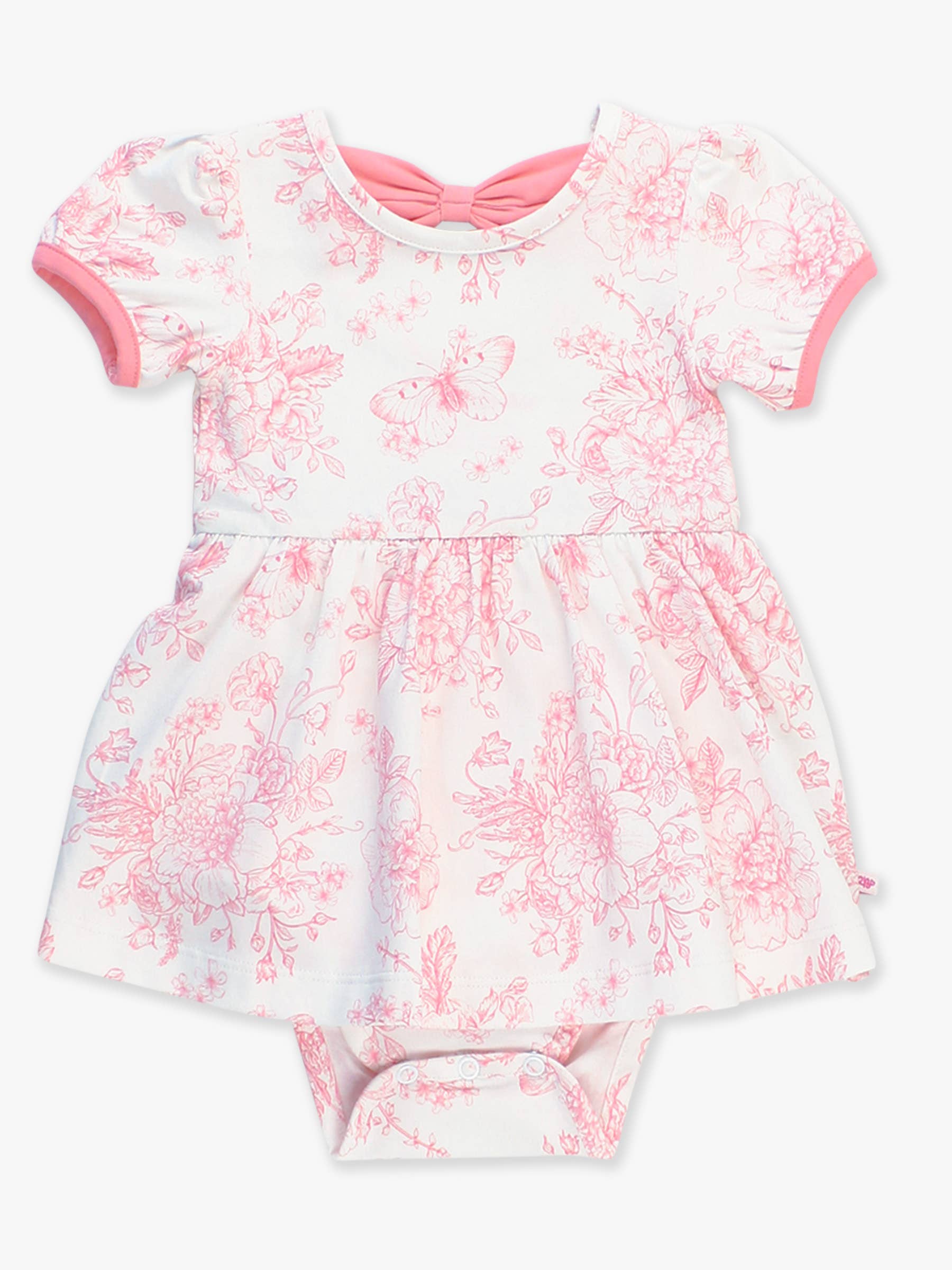 Baby Girls Bubblegum Pink Butterfly Garden Toile Short Sleeve Bow Twirl Romper