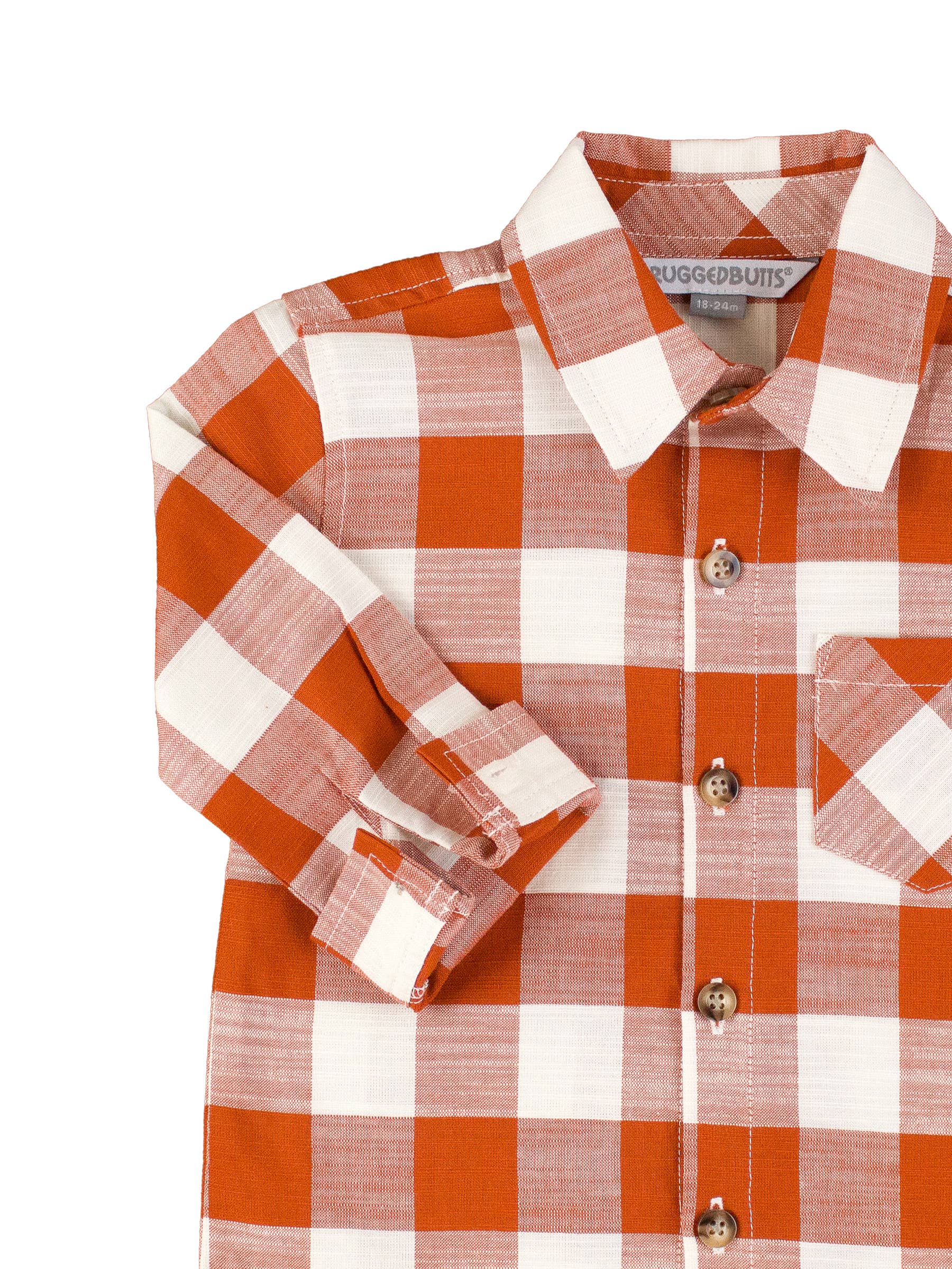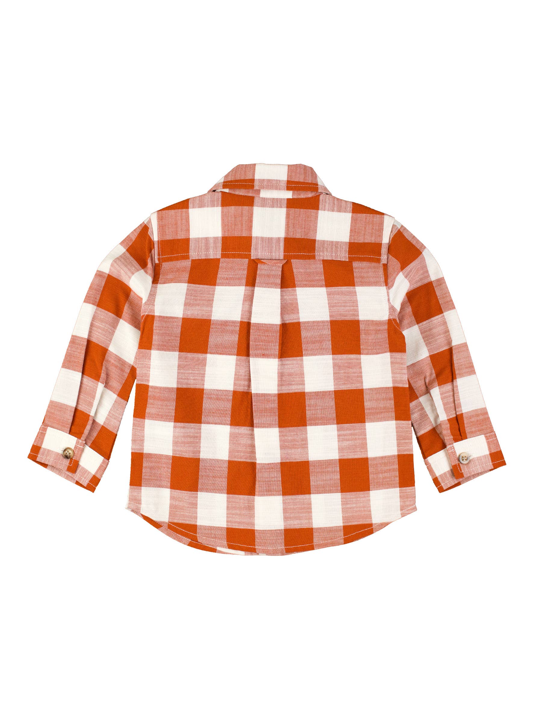 Baby Boys Rust Plaid Long Sleeve Button Down Shirt: Orange