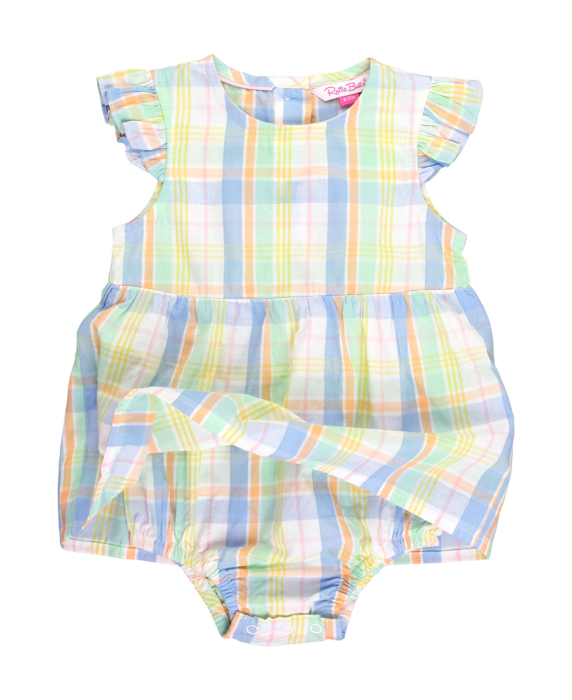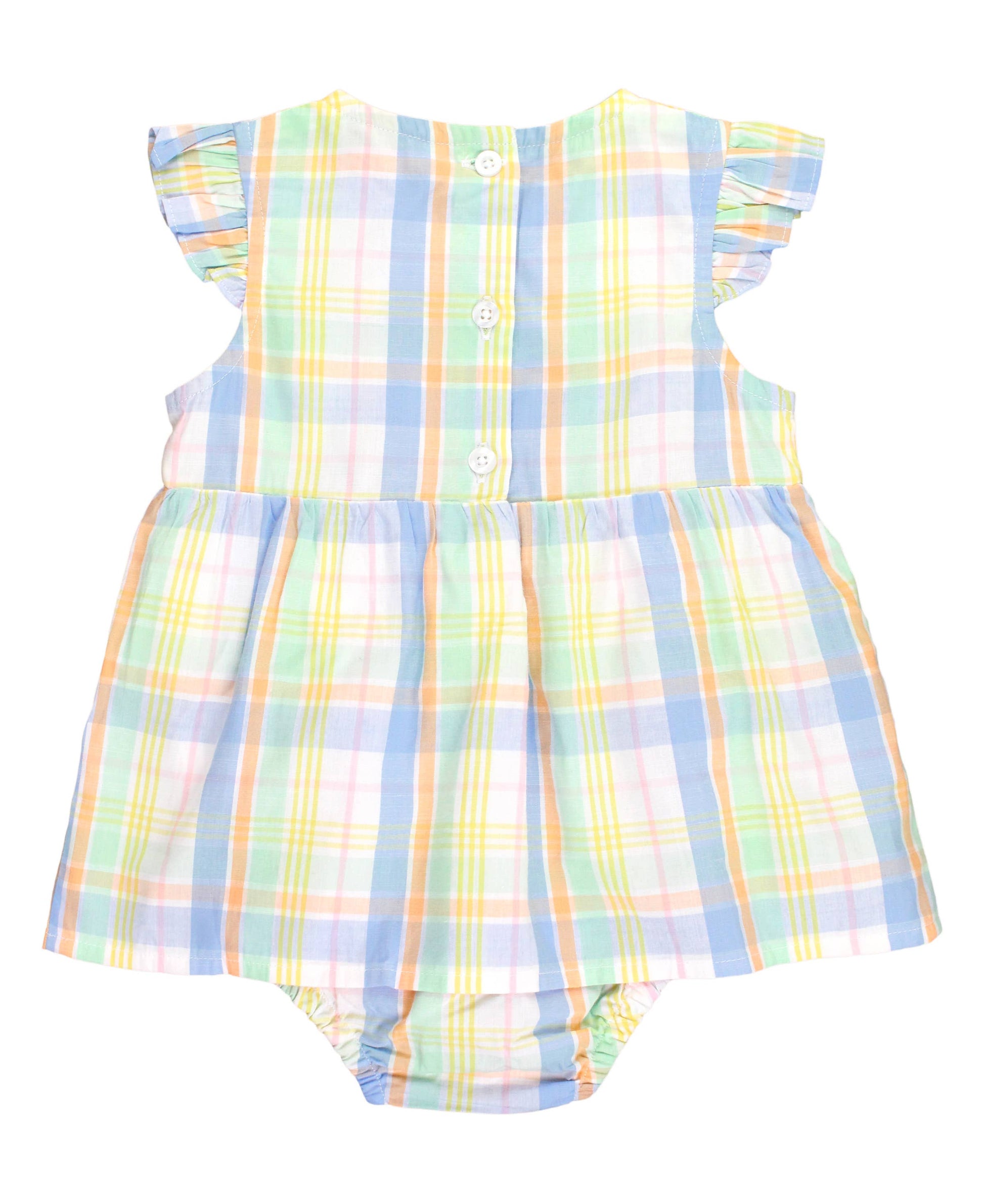Baby Girls Clubhouse Rainbow Plaid Flutter Sleeve Skirted Romper: Multi-Color