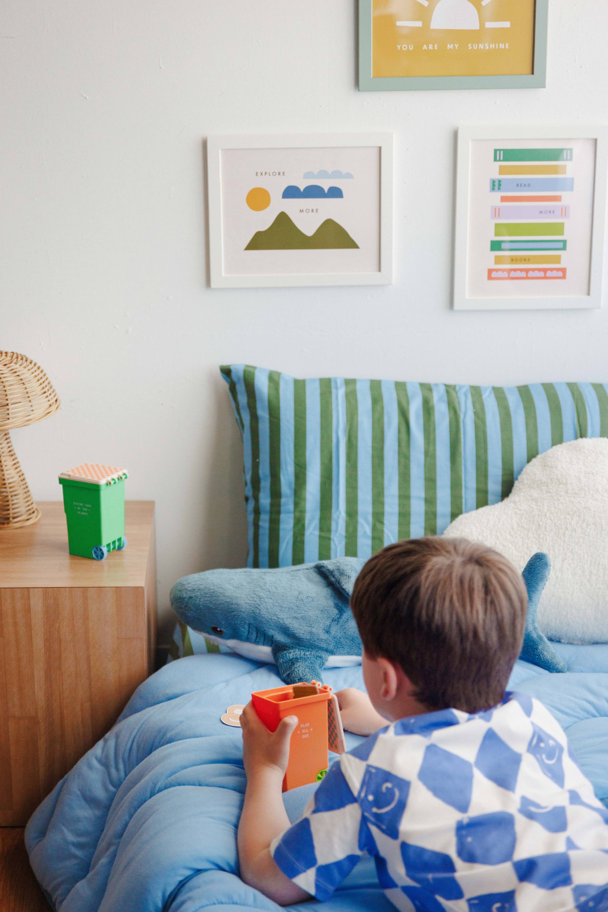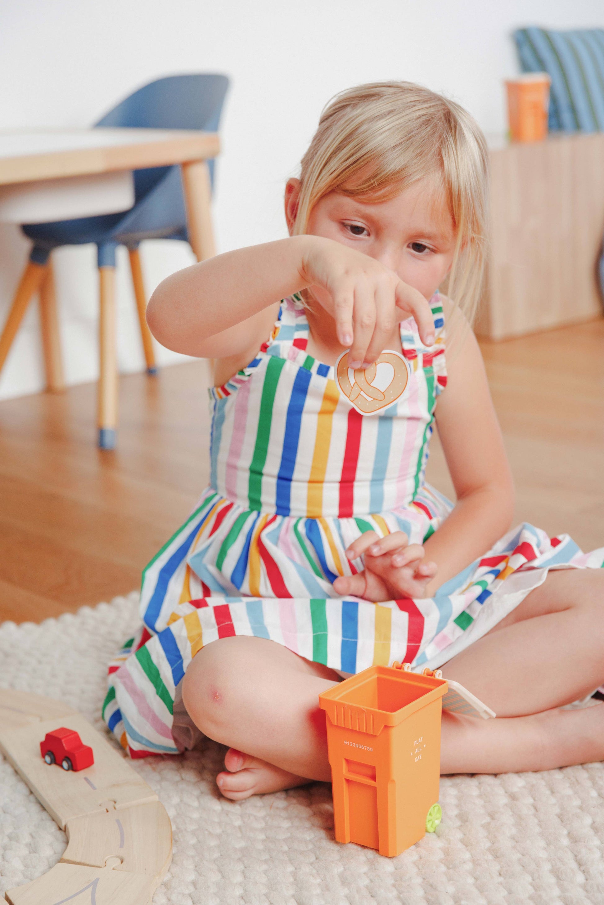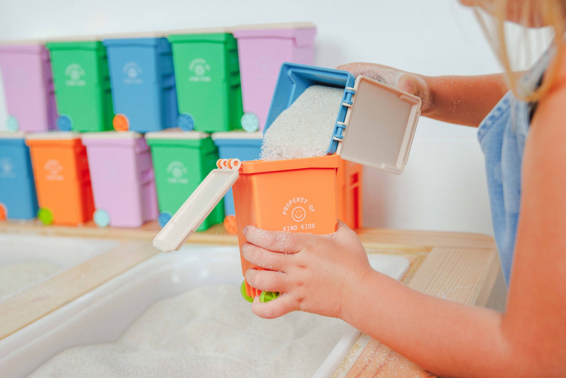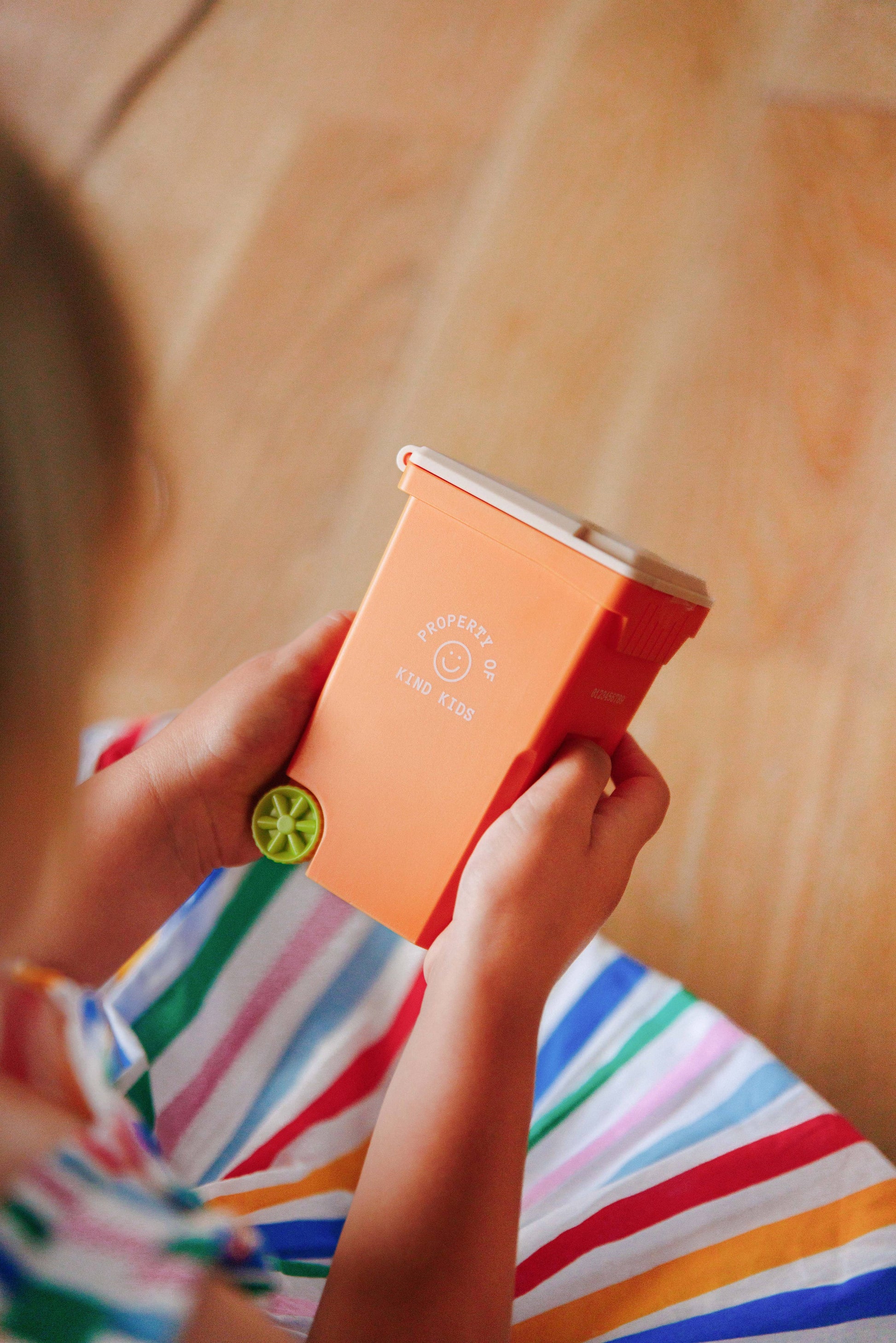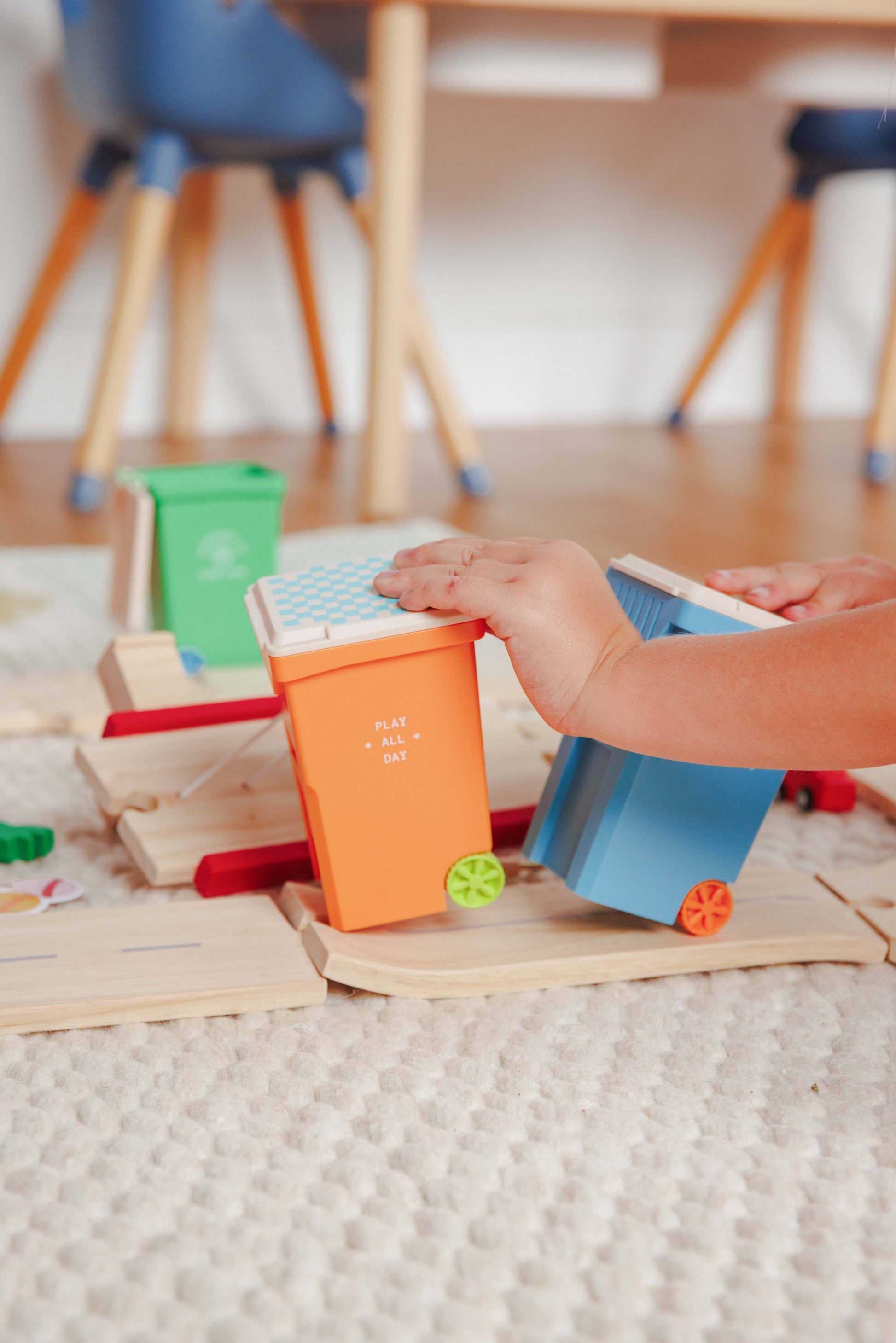 Inspired by every kid’s favorite truck, our Toy Trash Cans come in four bold colors and are built to fuel endless adventures. Each trash can comes with six cardboard trash pieces. Whether they're used to sort toys, store treasures, or act as the star of a pretend city cleanup, these cans turn cleanup time into playtime. Made with food-grade materials, they’re safe, durable, and delightfully kid-approved.