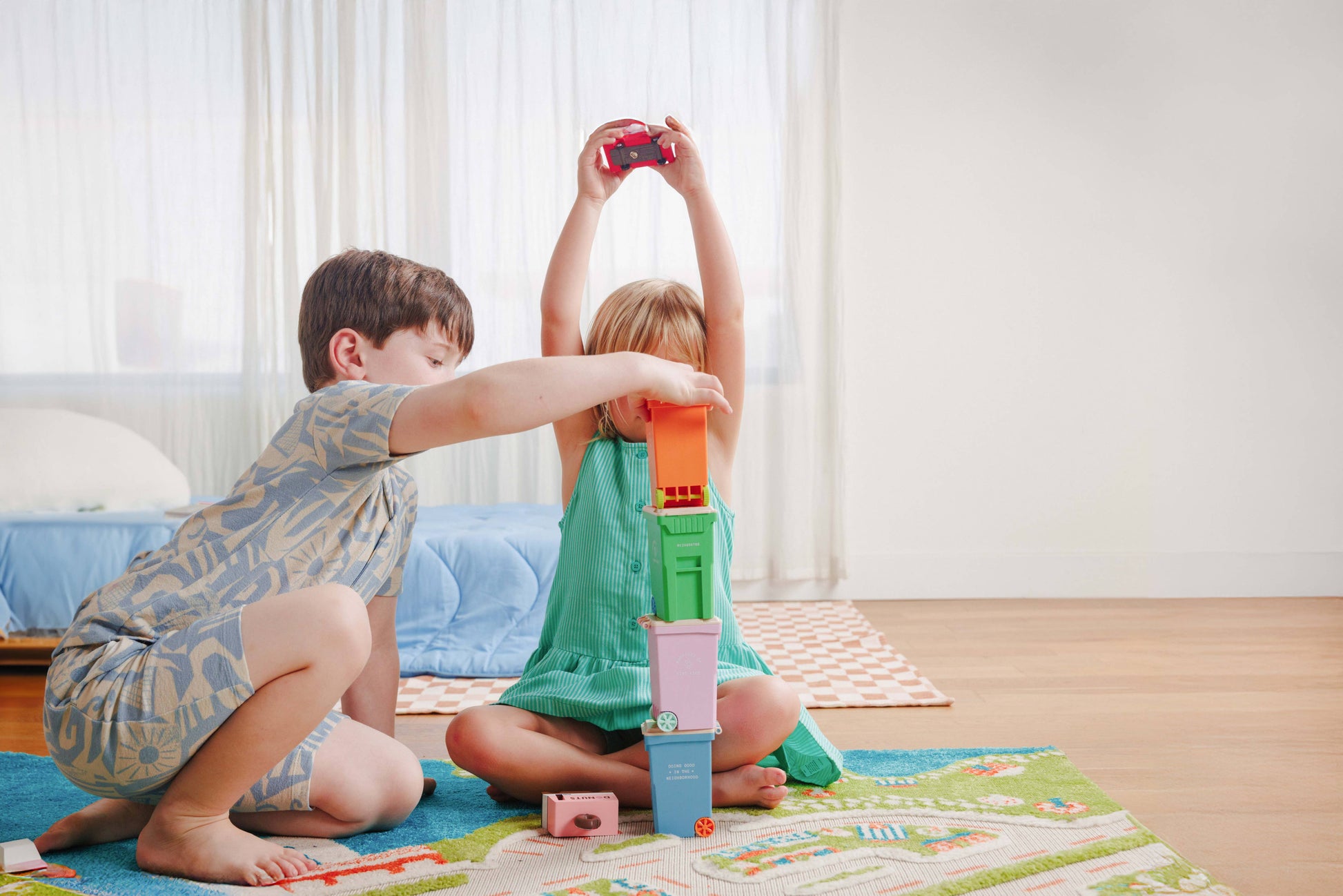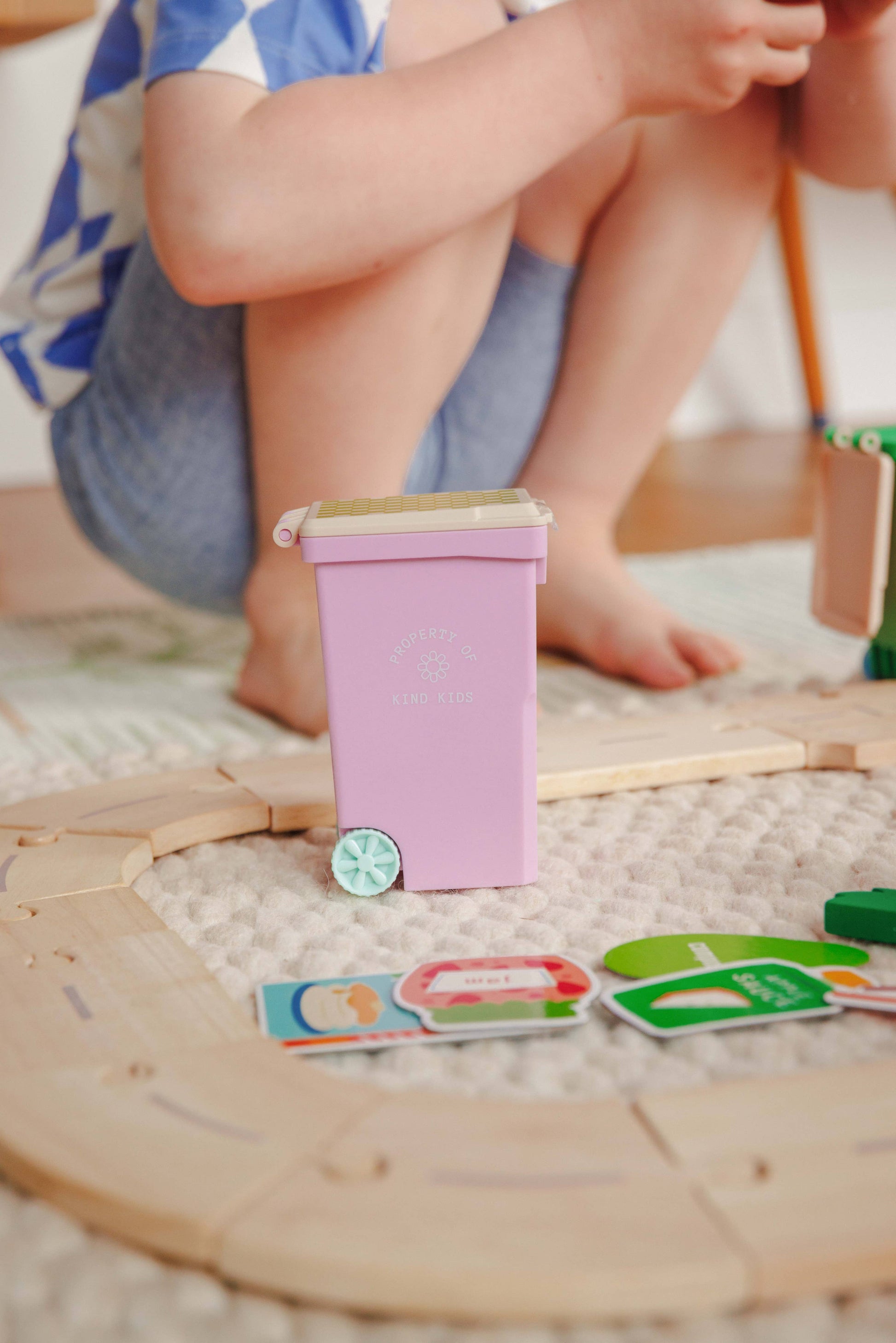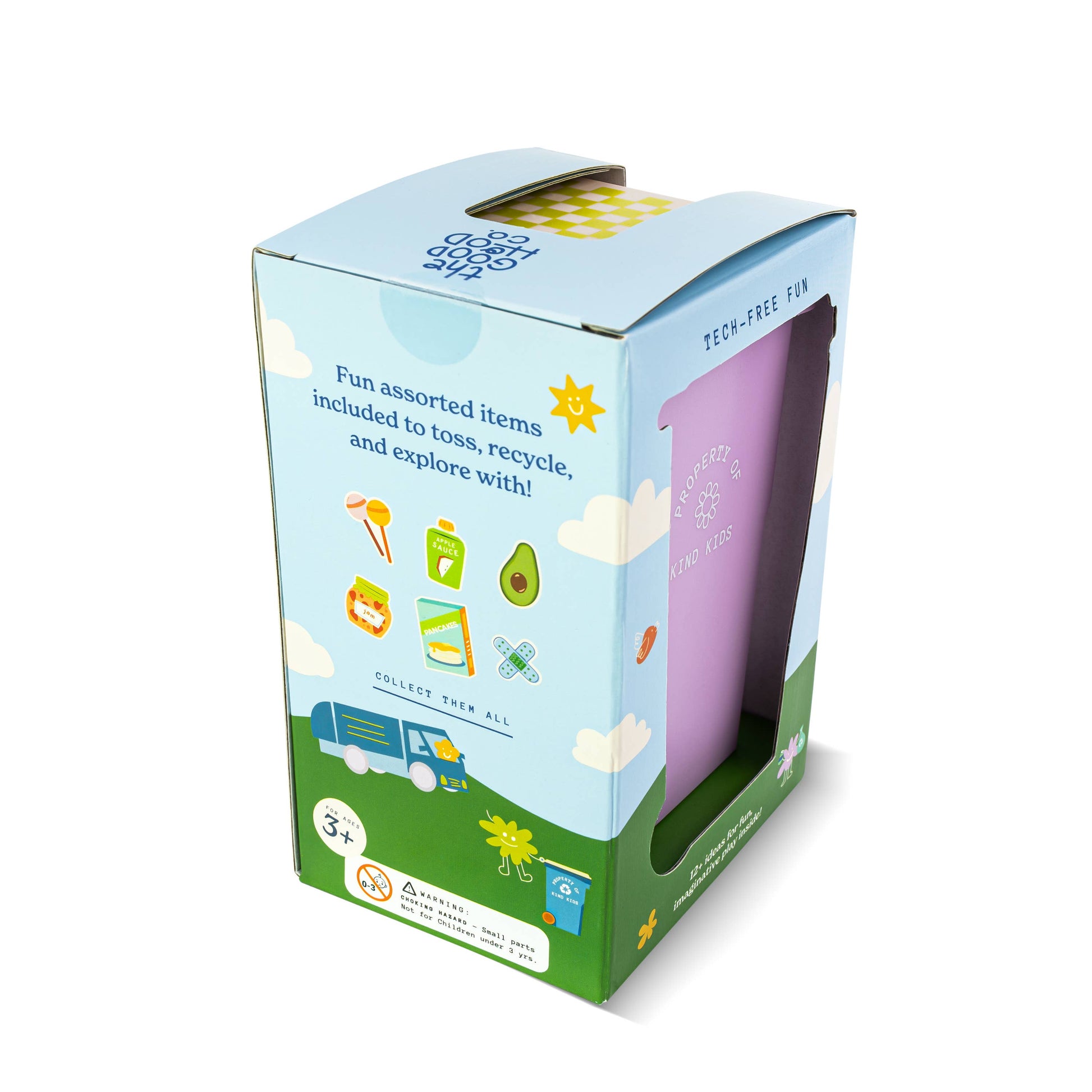 Inspired by every kid’s favorite truck, our Toy Trash Cans come in four bold colors and are built to fuel endless adventures. Each trash can comes with six cardboard trash pieces. Whether they're used to sort toys, store treasures, or act as the star of a pretend city cleanup, these cans turn cleanup time into playtime. Made with food-grade materials, they’re safe, durable, and delightfully kid-approved.