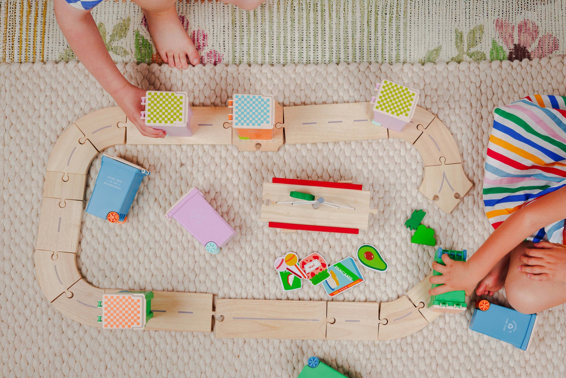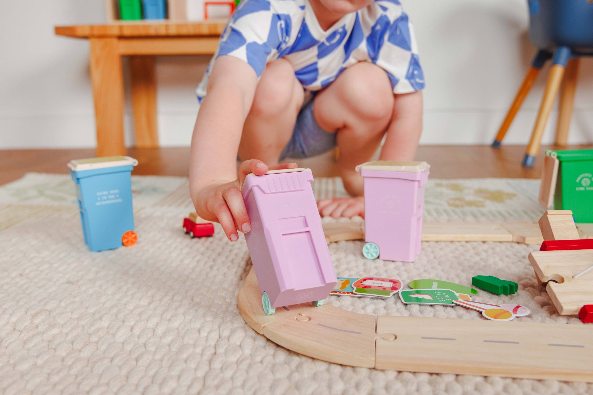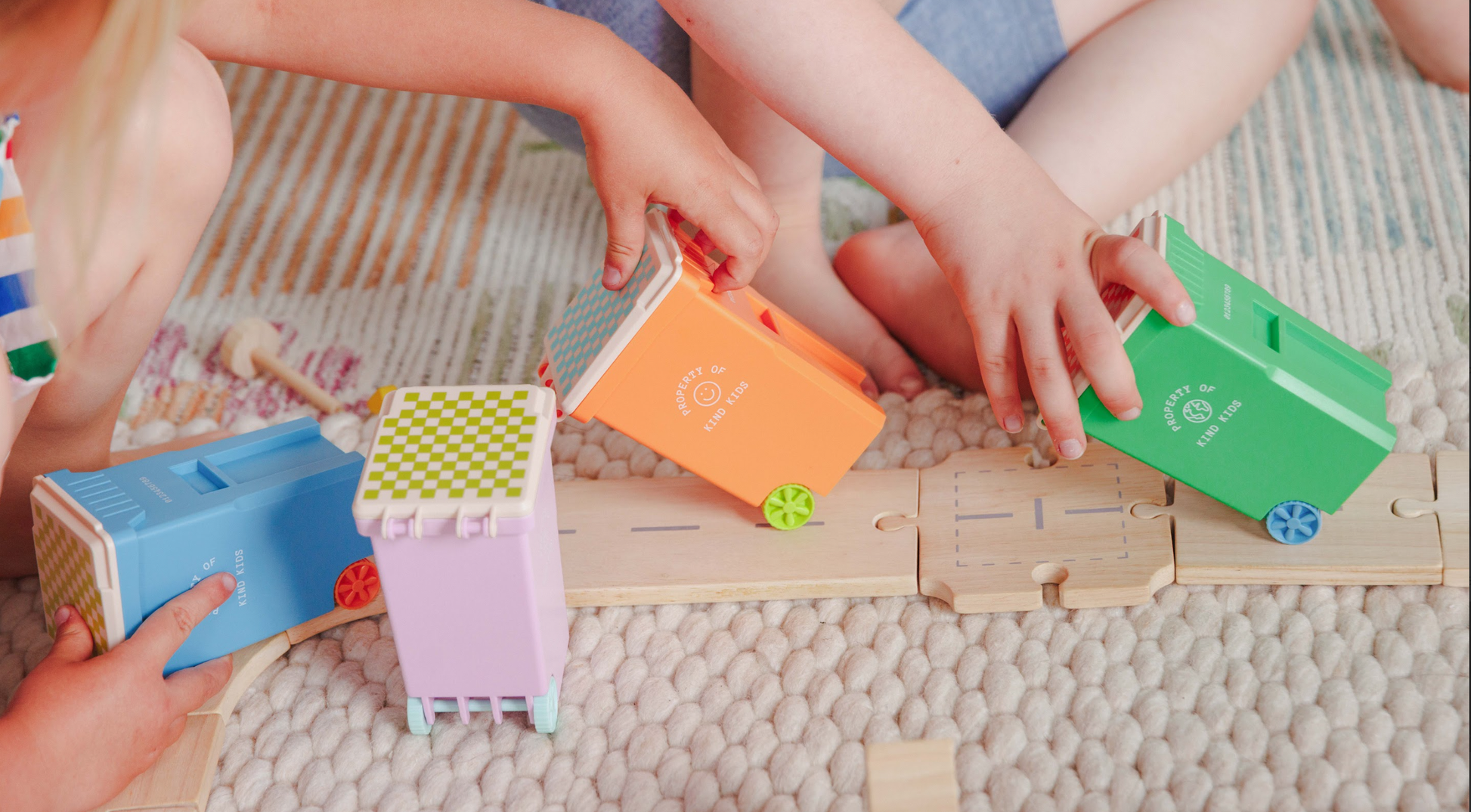 Inspired by every kid’s favorite truck, our Toy Trash Cans come in four bold colors and are built to fuel endless adventures. Each trash can comes with six cardboard trash pieces. Whether they're used to sort toys, store treasures, or act as the star of a pretend city cleanup, these cans turn cleanup time into playtime. Made with food-grade materials, they’re safe, durable, and delightfully kid-approved.