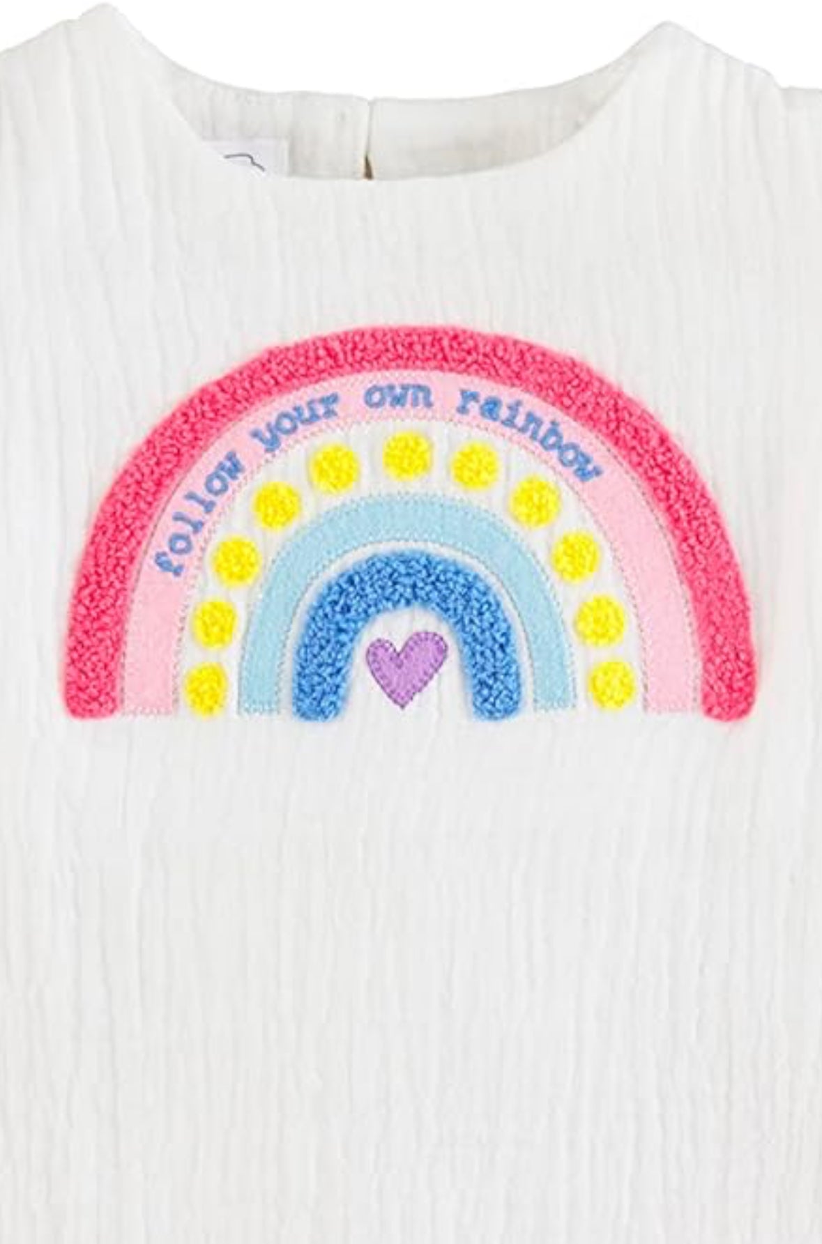 Follow your own rainbow with our Rainbow Tunic and Legging Set. The two piece set comes with an appliqued cotton gauze tunic. The tunic features pom trim flutter sleeves and a rainbow applique in the center. The tunic comes with a pair of hot pink cotton rib leggings.