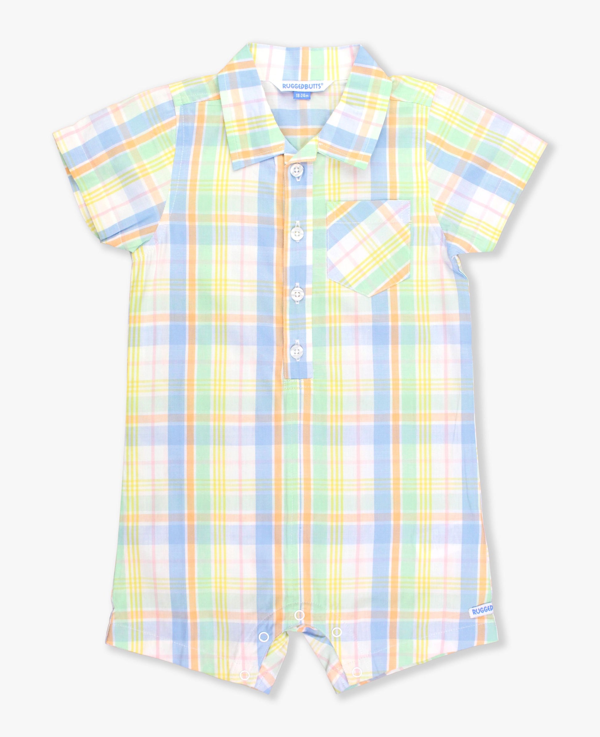 Short Sleeve Clubhouse Rainbow Plaid Button-Up Romper