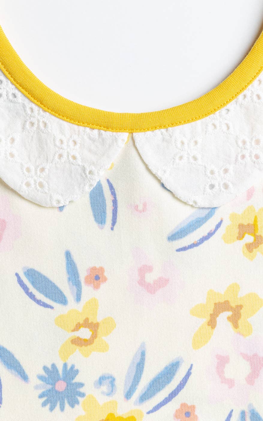 Sweet watercolor floral combines with the softest cotton jersey to make the Sunday Best Dress. With a twirly circle skirt, an eyelet Peter Pan collar, and pouchy pockets, this all-knit number is ready to seize the day!
